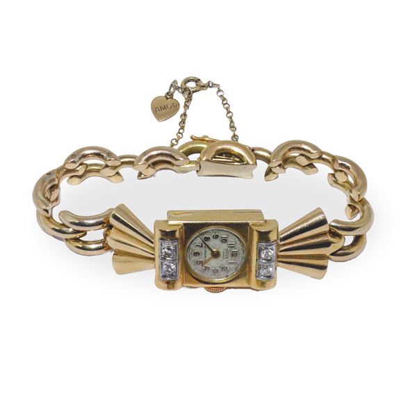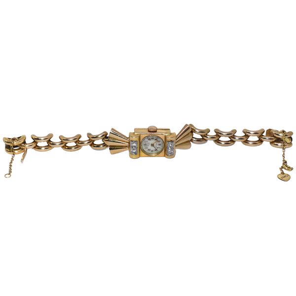 Orologio da donna in oro con diamanti taglio brillante. Maglia a bracciale