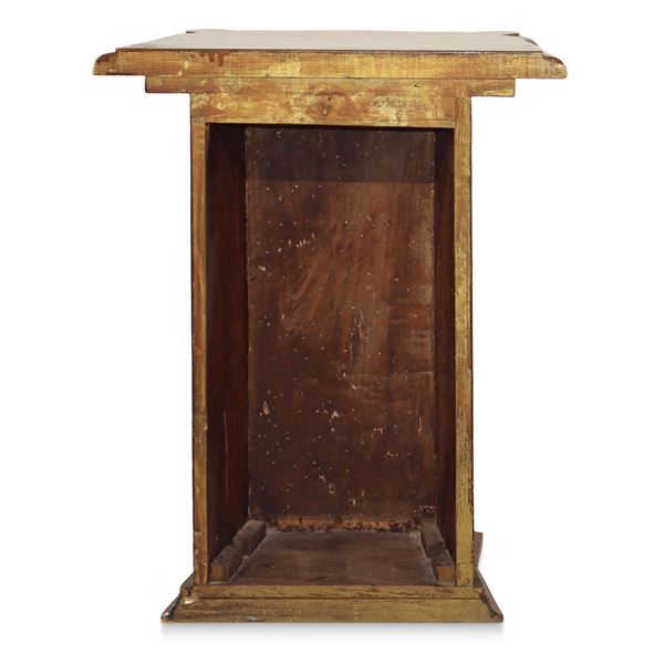 Coppia di tavolini, comodini realizzati con frammenti barocchi in legno dorato., XVII secolo
