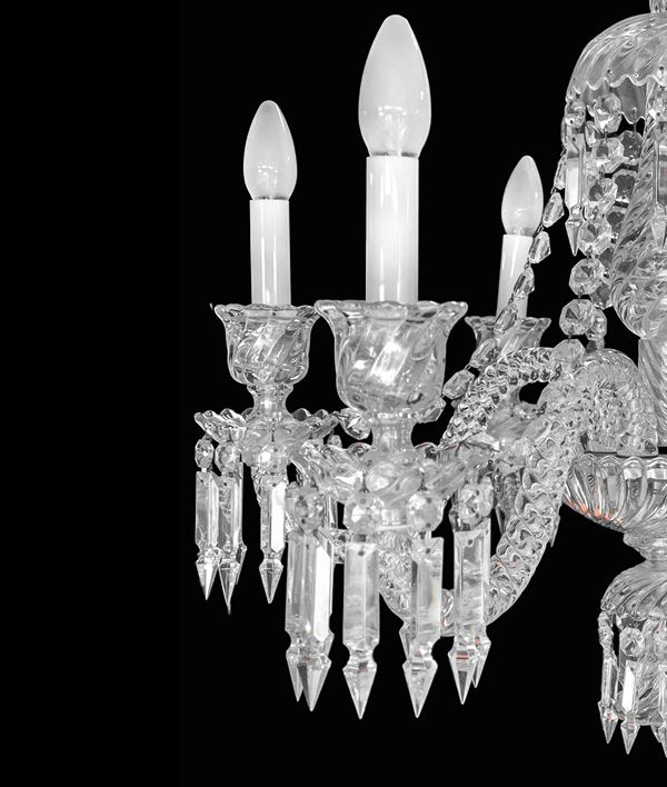 Lampadario in cristallo Baccarat, modello L.E. 218 a sei luci, 1980
