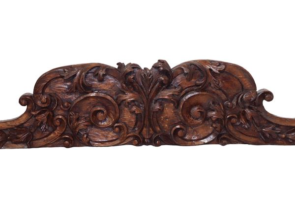 Grande fregio in legno massello scolpito e intagliato a motivi a larghe foglie, XVIII secolo