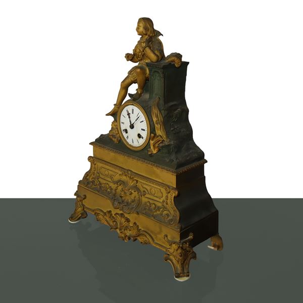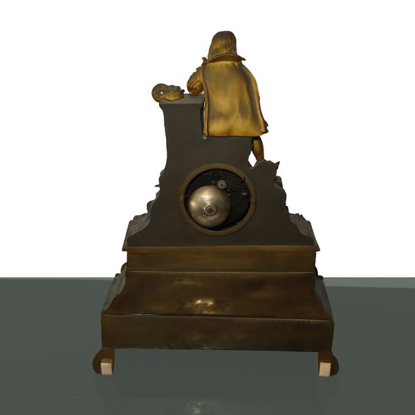 Orologio da tavolo in metallo dorato con figura di pensatore, Francia XIX secolo