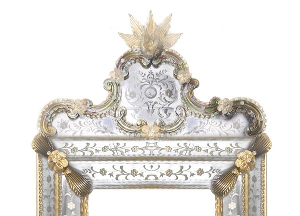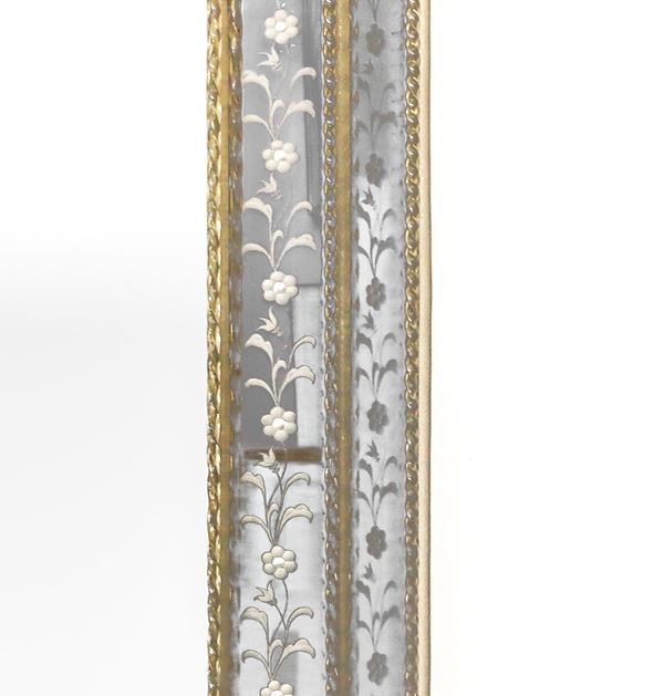 In vetro molato e bulinato a motivi floreali su fondo nero.