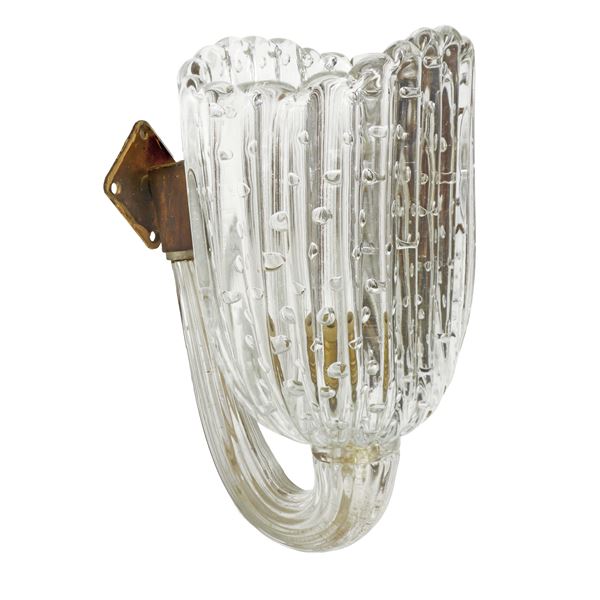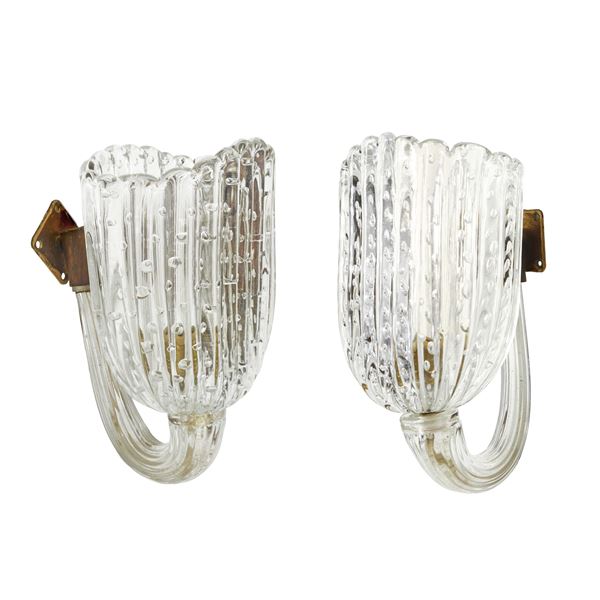 Coppia di lampade da muro in vetro di Murano pulegoso