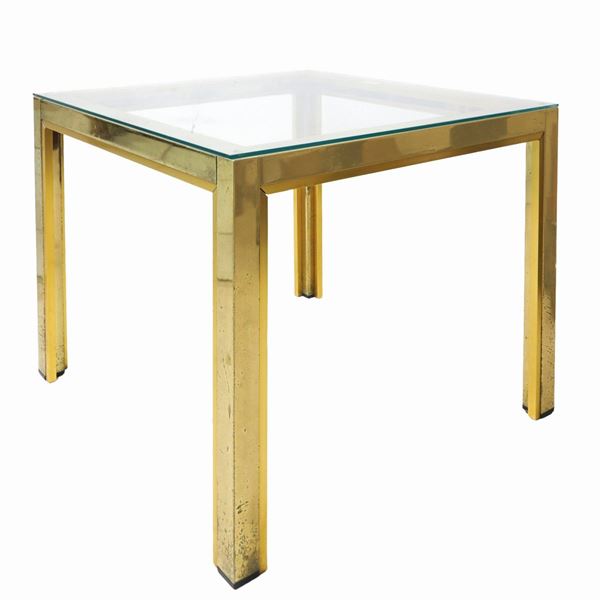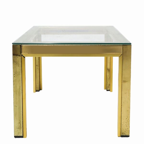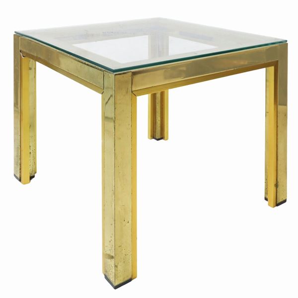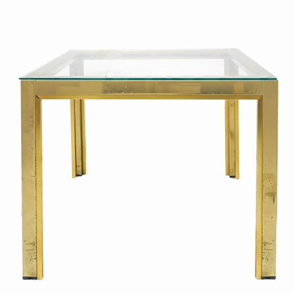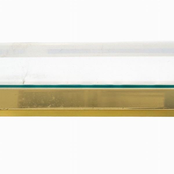 Struttura in ottone dorato, piano in vetro color. Presenti segni d’uso.