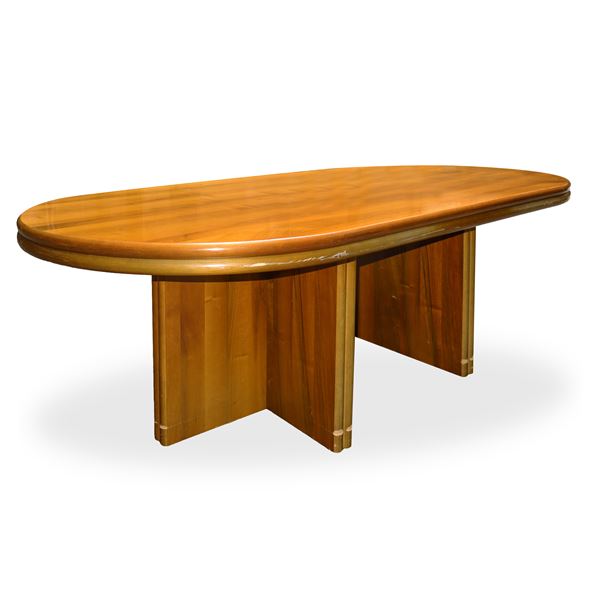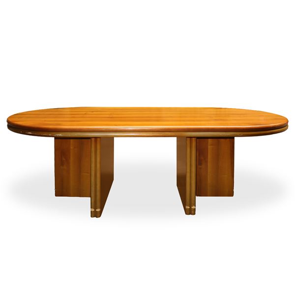 Grande tavolo da riunione con struttura e piano in legno massello più 8 sedie