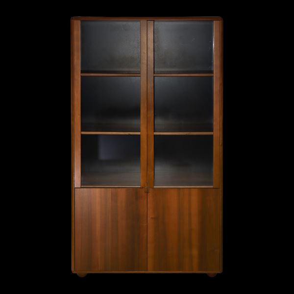 Libreria a due ante a vetri e due sportelli bassi in legno massello