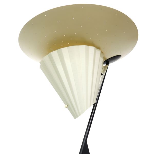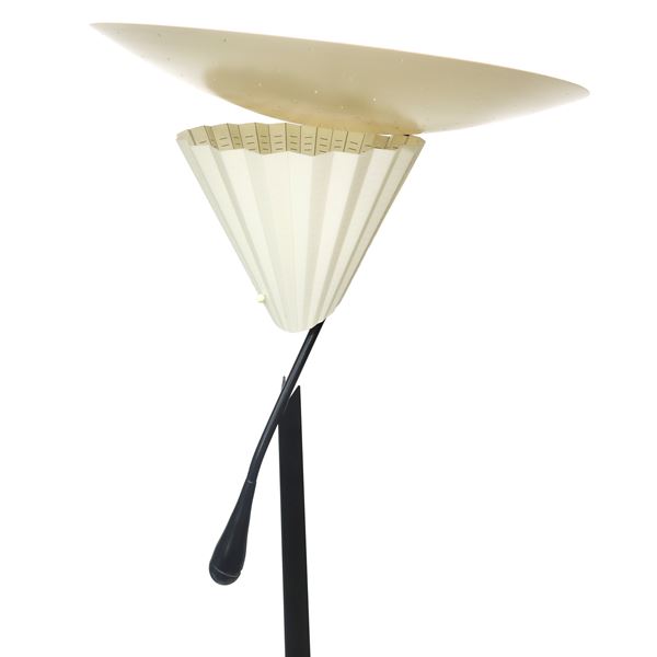 Piantana con diffusore e struttura in metallo laccato, controdiffusore in pergamenoide, 1990