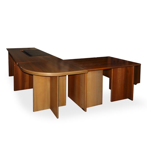 Scrivania con dattilo in legno massello con poltrona dirigenziale e due poltrone
