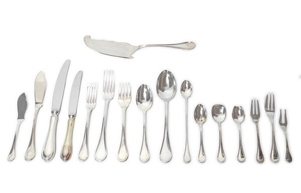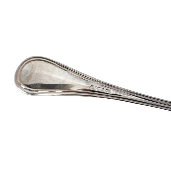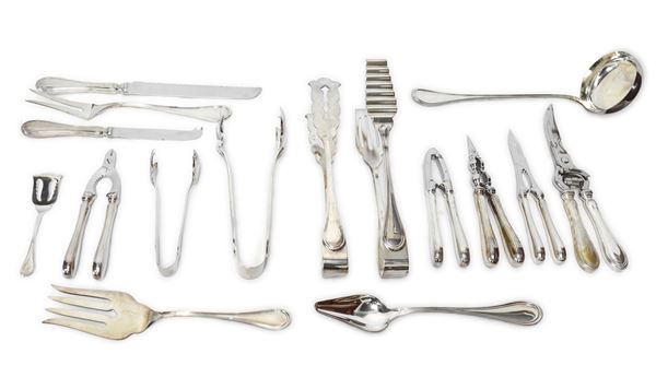 Forchette grandi (32) 1550 gr, cucchiai 786 gr, forchette pesce 556 gr, paletta 126 gr, mestolo 232 gr, cucchiai dolce (12) 614 gr., cucchiaini frutta (12) 214 gr., cucchiaini gelato (12) 236 gr., cucchiaini cocktail (12) 350 gr., cucchiaini tè (12) 216 gr., forchette dolce (12) 246 gr., forchette frutta (12) 508 gr., coltelli pesce (12) 628 gr., cucchiaini caffè (12) 108 gr., forvhettine antipasto (10) 78 gr., posatine zucchero e limone (2) 36 gr., posate da portata e varie pinze (9) 1120 gr., coltelli grandi(12) coltelli piccoli (12). utensili da cucina (con lame o varie parti inox)