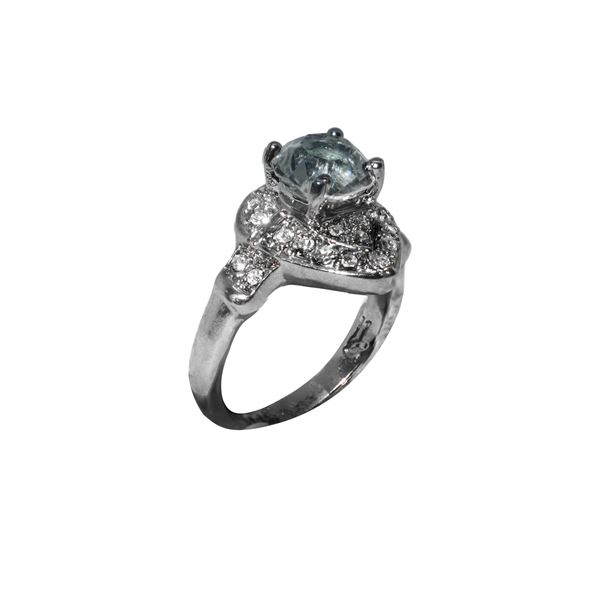 Anello in argento a goccia con pavè di zirconi e zircone centrale in rilievo