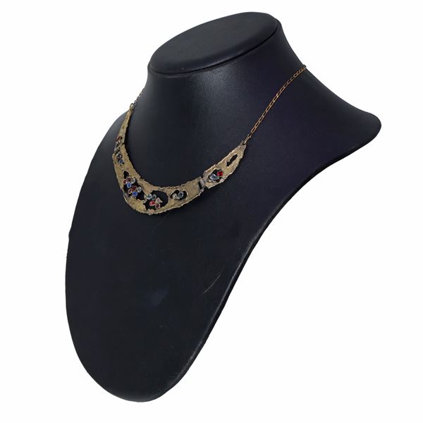 Collana in argento 925 semirigida in metallo dorato con pietre colorate