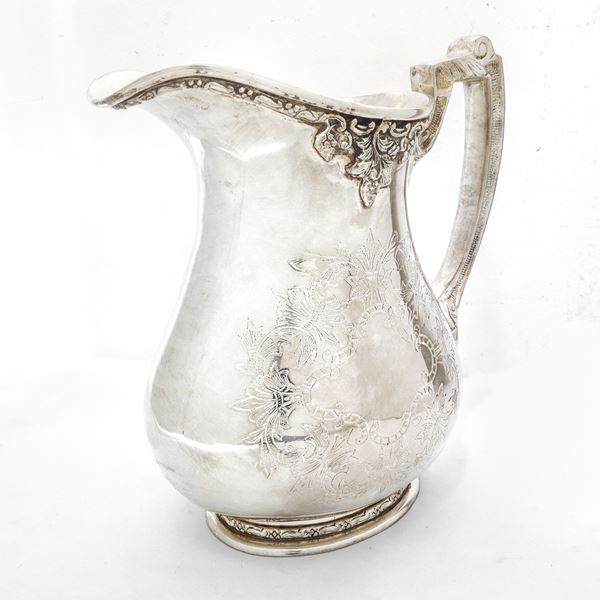 Brocca vittoriana in sheffield con decori sul fronte sul retro e sulla presa