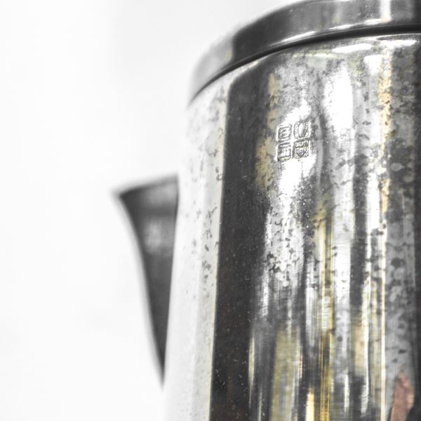 Caraffa termica in sheffield con manico in legno, XX secolo