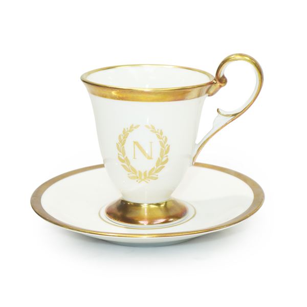 Servizio da caffè da 12 in porcellana Sevres con stemma di Napoleone e bordi dorati