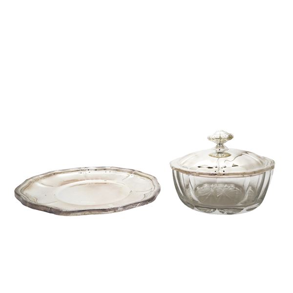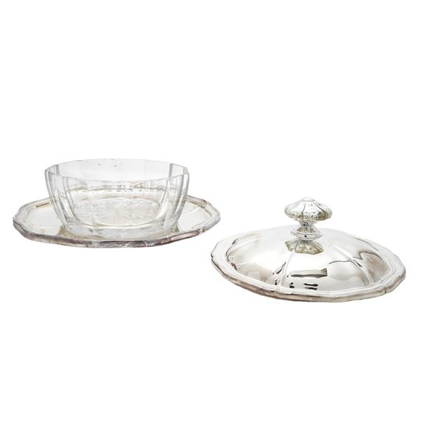 Formaggiera con piattino in argento 800, Argentieri Ricci. Dotato di scatola originale.