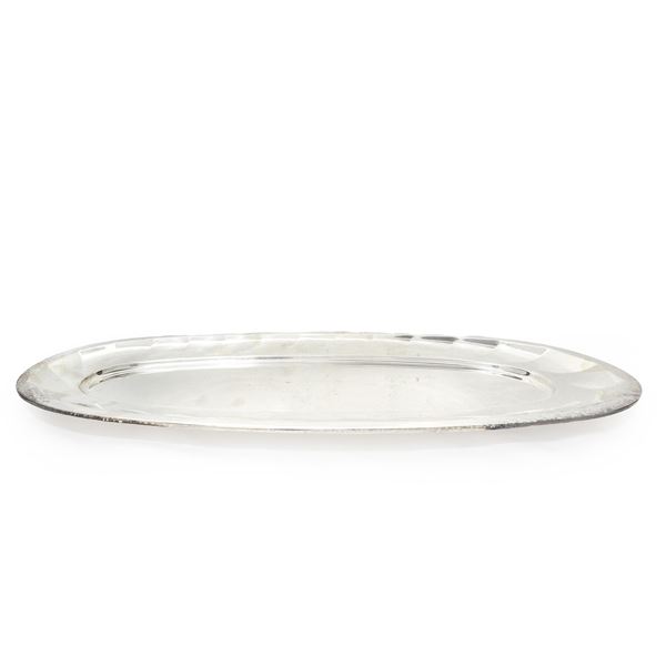 Vassoio silver palted di grandi dimensioni con decoro geometrico a sbalzo sui bordi