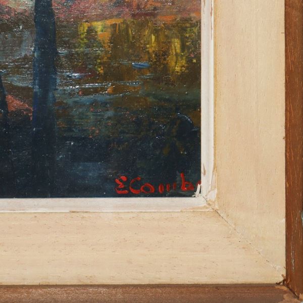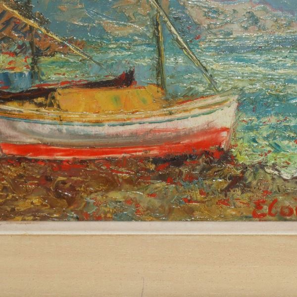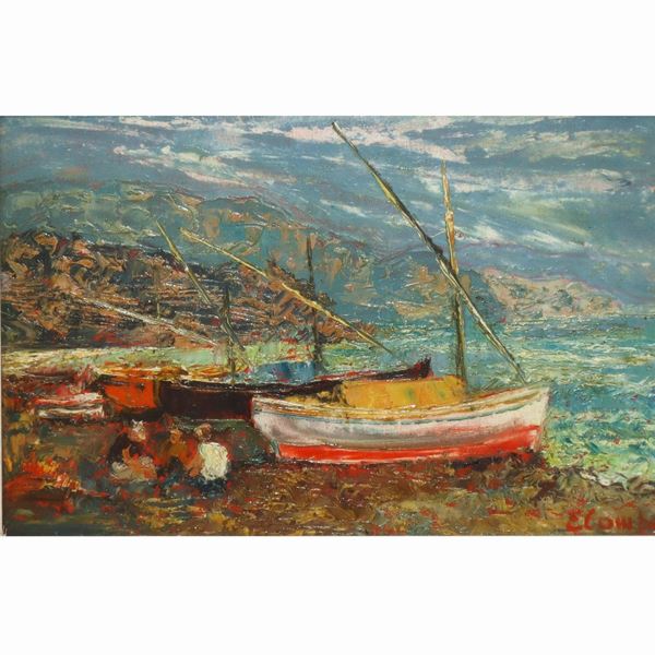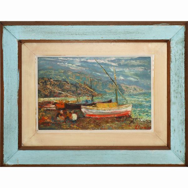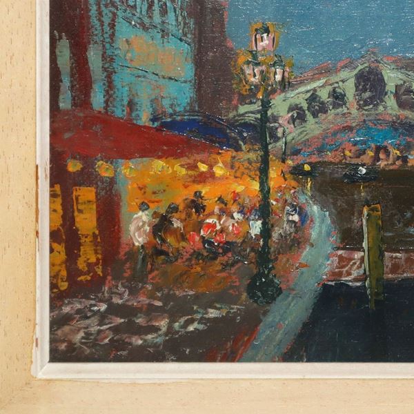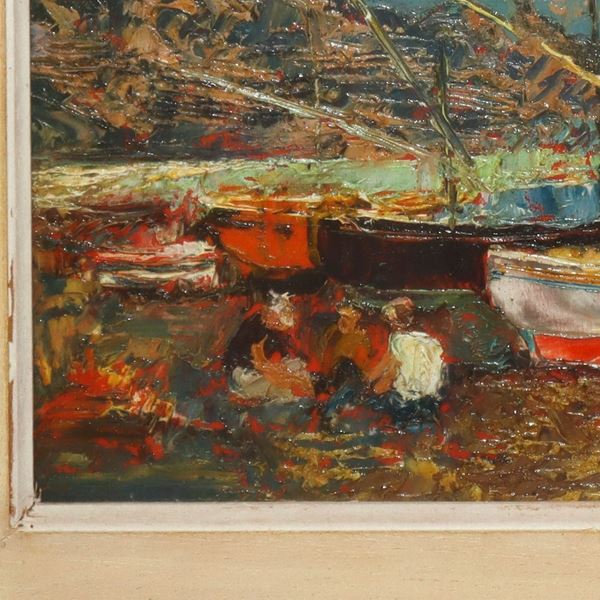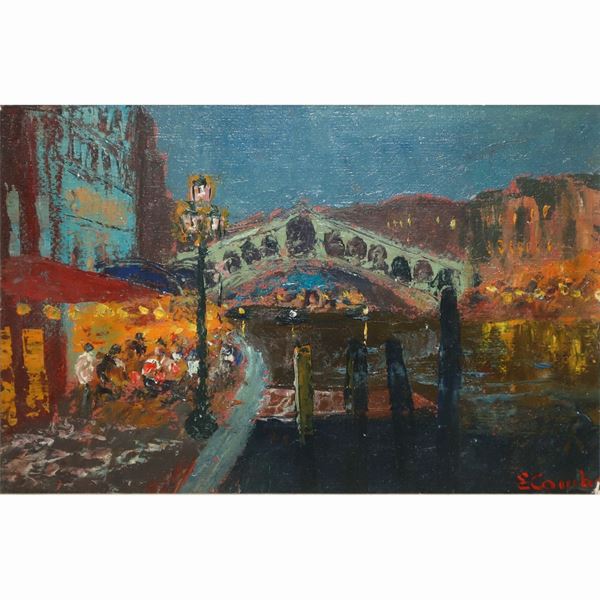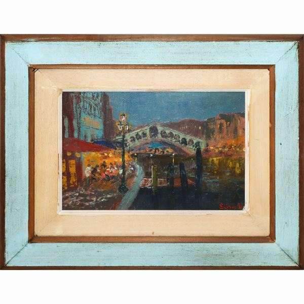 Coppia di paesaggi, Notturno di Venezia e Ponte di Rialto, Marina con barche a secco