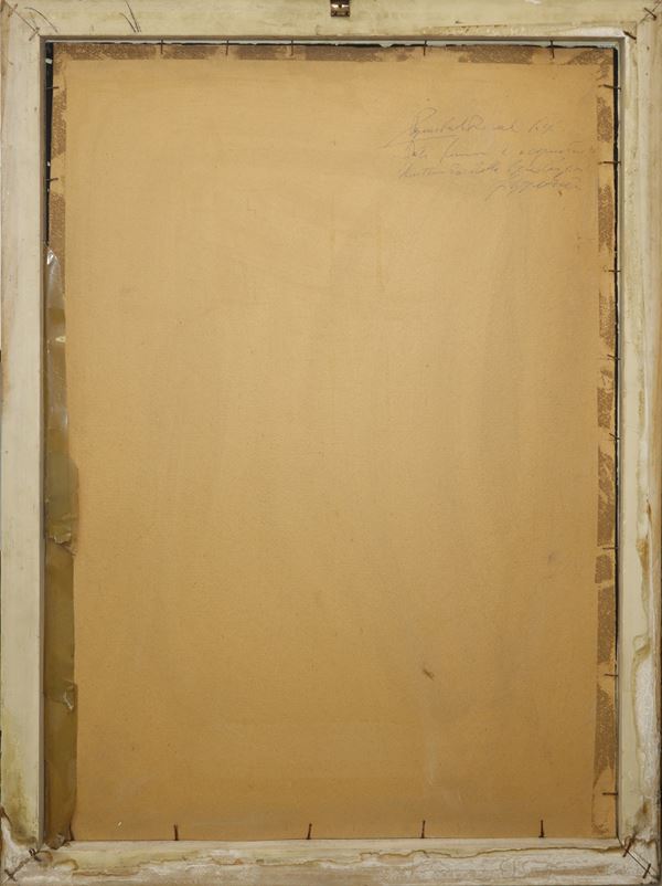 Presente piccola mancanza sulla parte superiore sinistra dell'opera, fuoricampo. Firmato in basso al centro