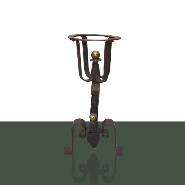Coppia di alari da camino in ferro chiodato, XVIII secolo
