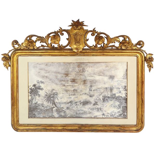 Specchiera in legno dorato Luigi XV con specchio al mercurio