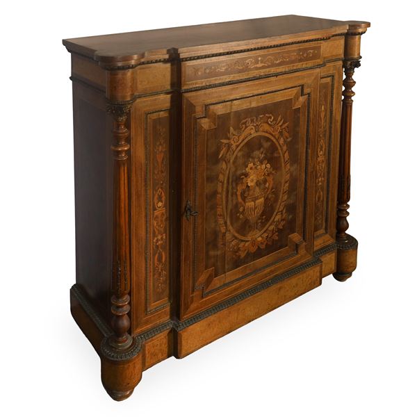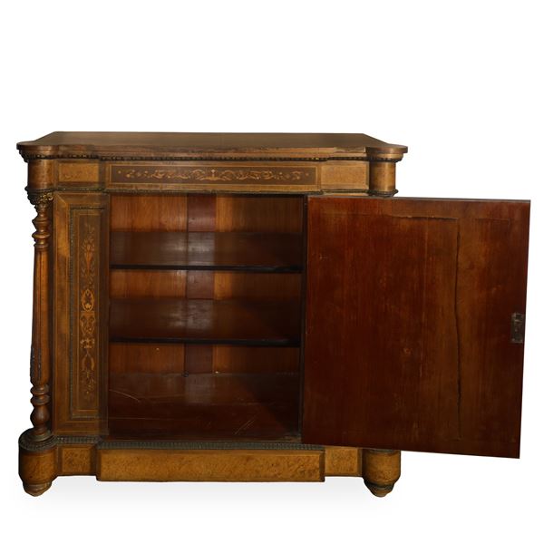Etagere Vittoriano in legni chiari con intarsi laterali, Inghilterra XIX secolo