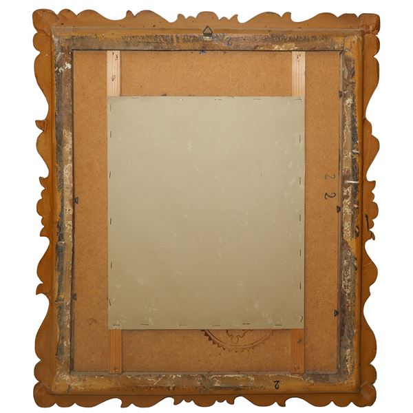 In cornice di legno dorata a vassoio coeva alla pittura su vetro di ambito veneziano del XVIII secolo