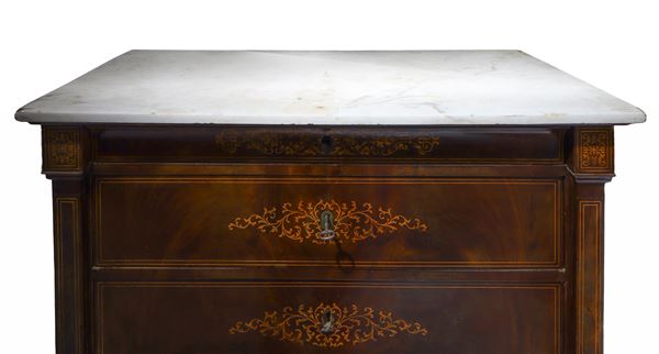Settimanile con marmo bianco al piano, cassetti con intarsi in legni chiari a ghirlande, Sicilia XIX secolo