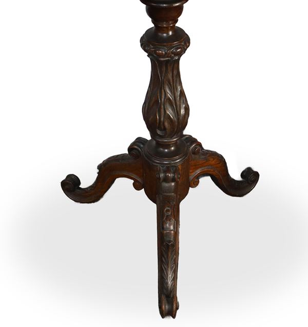 Tavolo a biscotto in noce con piede a tre razze, XIX secolo