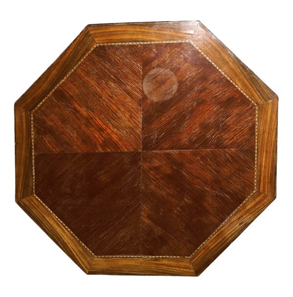 Tavolo ottagonale con piano filettato in noce chiara, Napoleone III 1860