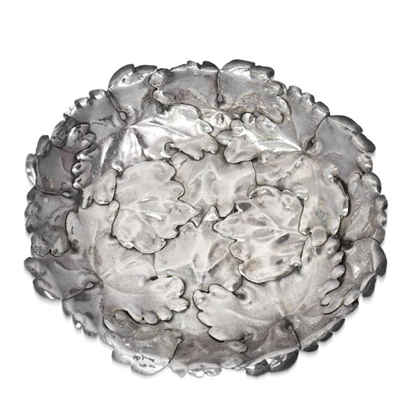 Portadolci in argento ribattuto a mano a foglia d'acanto