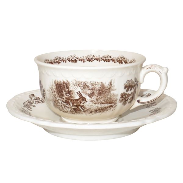 Servizio da te per 12, Villeroy & Bosh, Dresden mod. Nimrod, con raffigurazioni di diverse scene da Caccia,