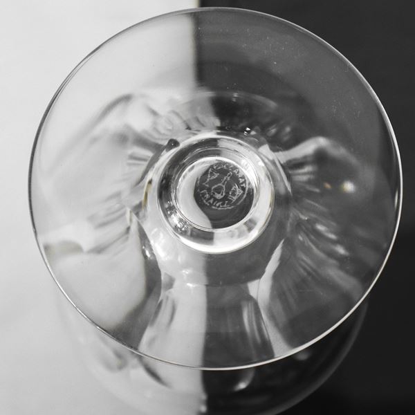 Cinque bicchieri da acqua. Dieci bicchieri da vinobianco .Otto bicchieri da digestivo. Presente il marchio della manifattura sul fondo. Minima sbeccatura su un bicchiere da vino su uno da digestivo e su due da acqua.