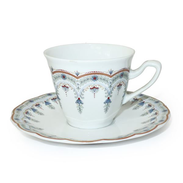 Servizio composto da: teiera, lattiera, zuccheriera, 12 tazzine con piattino