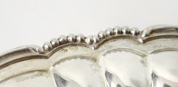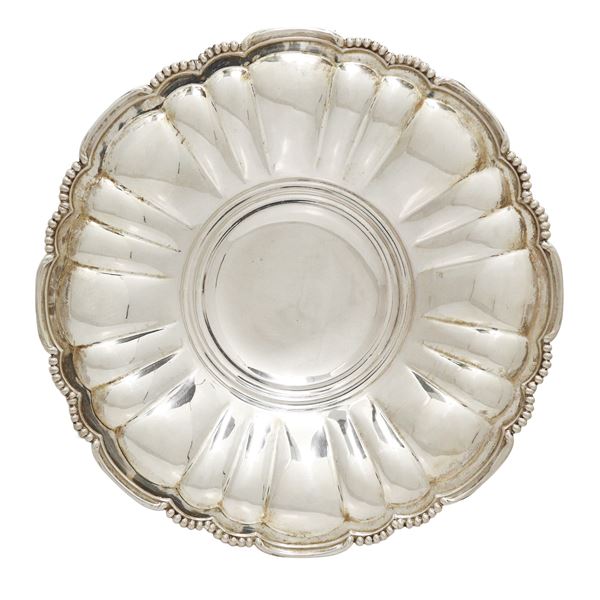 Portadolci in argento 800 sbalzato a lobi con bordo smerlato e pallottolato
