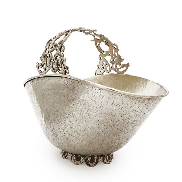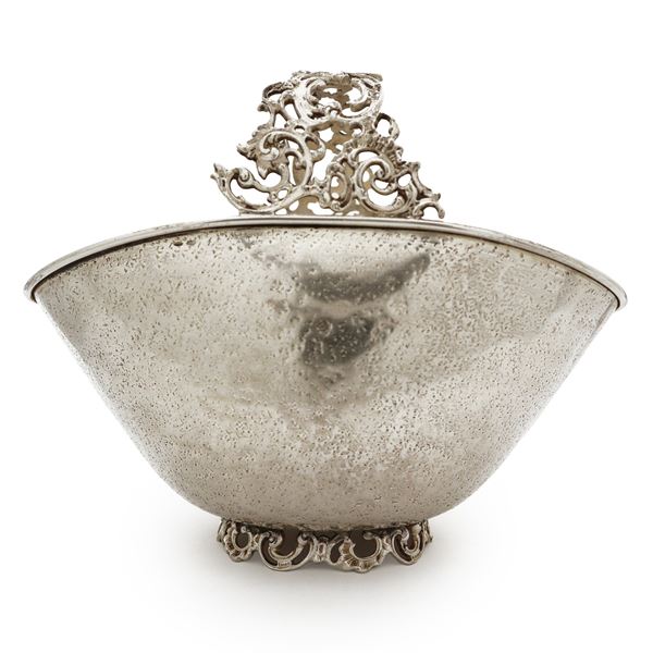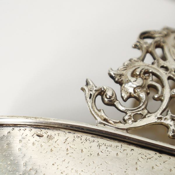 Portadolci in sheffield con base e presa con motivi a ghirlanda