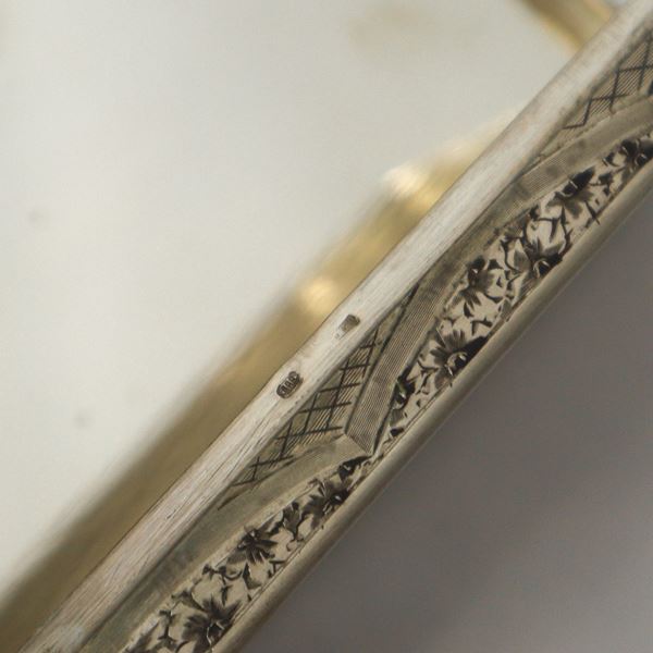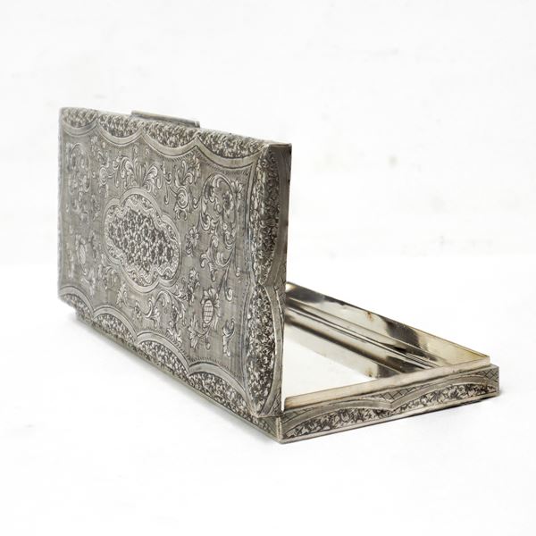 Scatola rettangolare in argento 800 decorata sbalzo con motivi floreali