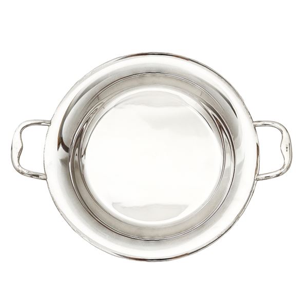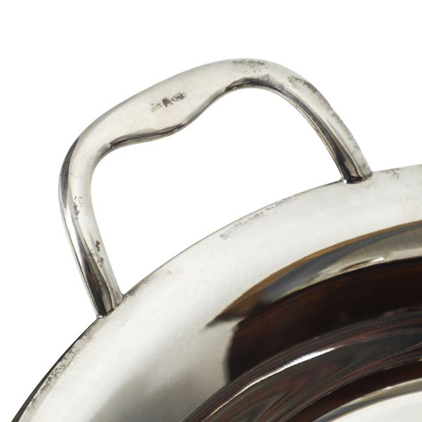 Vassoio circolare in argento 800 con prese laterali, XX secolo