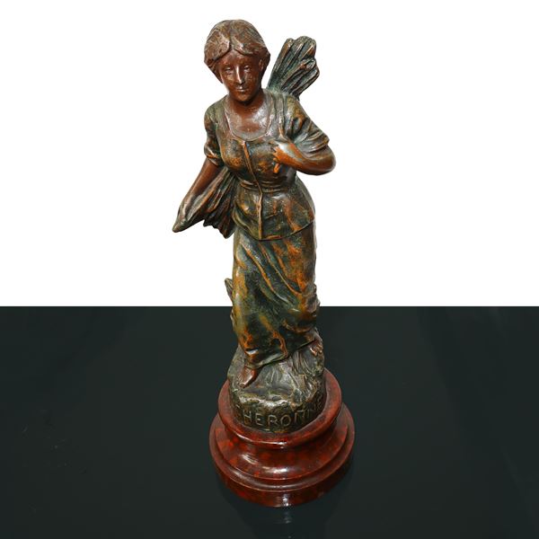 ''Bucheronne" (taglialegna), statua in metallo patinato bruno