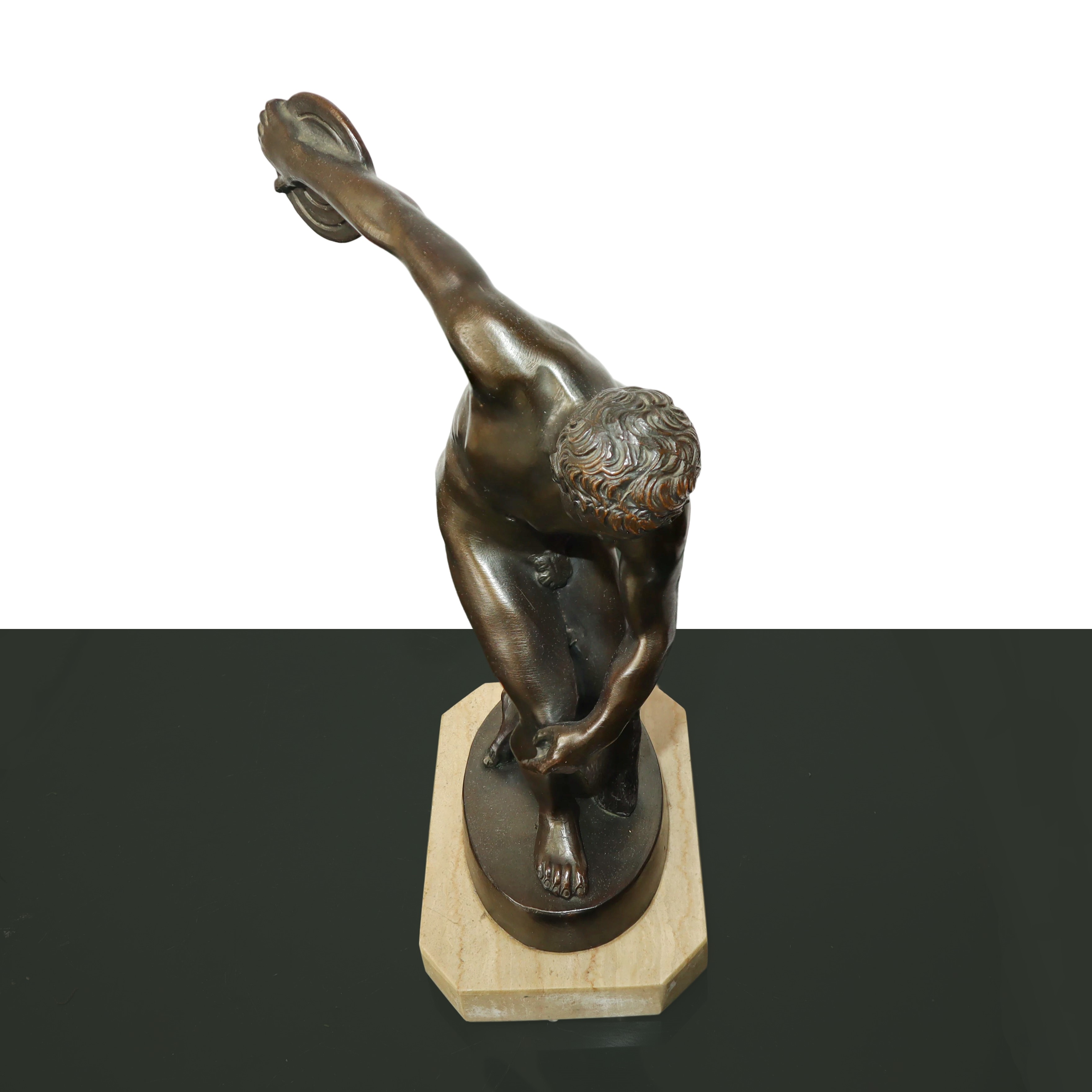 Discobolo, statua in metallo patinato bronzo