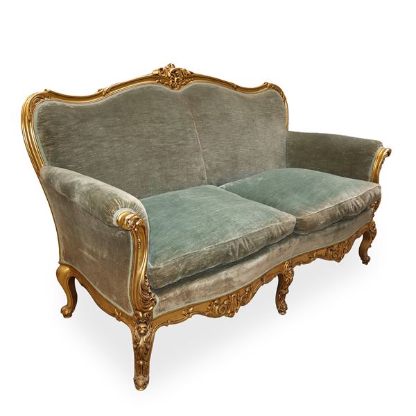 Divano nello stile Luigi Filippo con doratura a foglia, inizi XX secolo