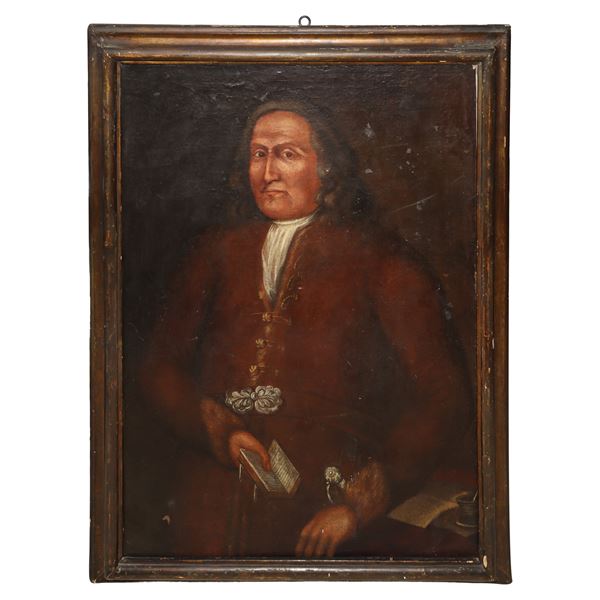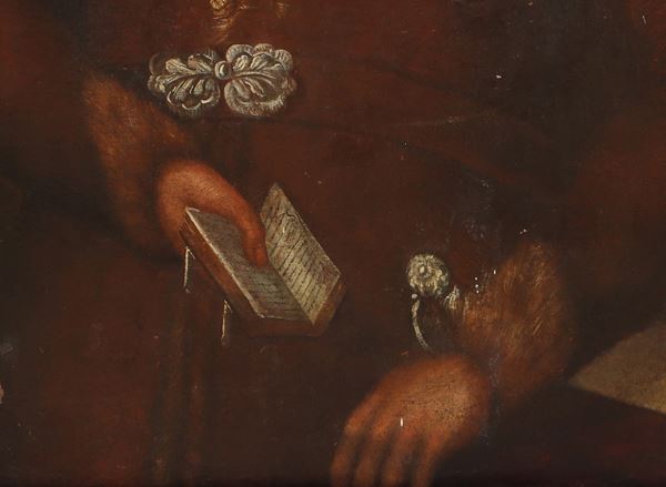 Ritratto di nobile con libro in mano, fine XVII secolo