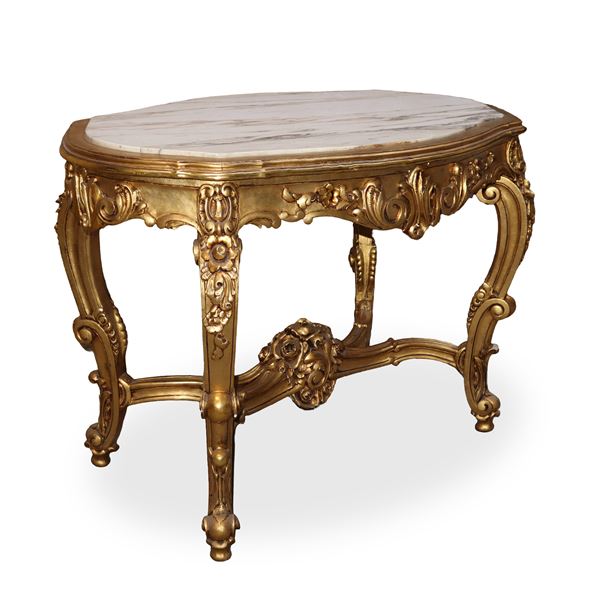 Tavolo basso con marmo bianco al piano doratura a foglia nello stile Luigi Filippo, inizi XX secolo