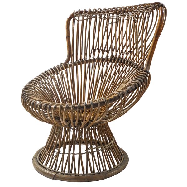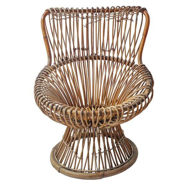 Poltrona modello Margherita, struttura composta da canne di giunco d'India e Malacca