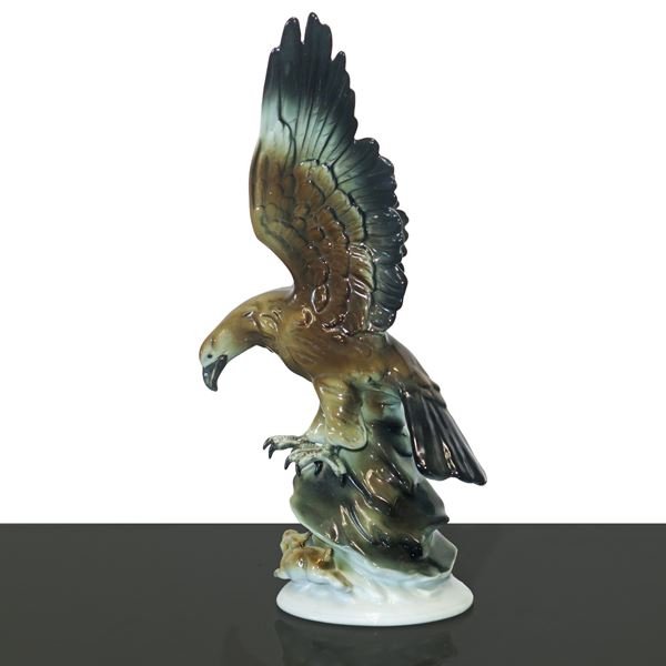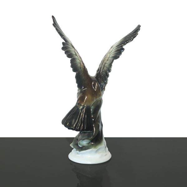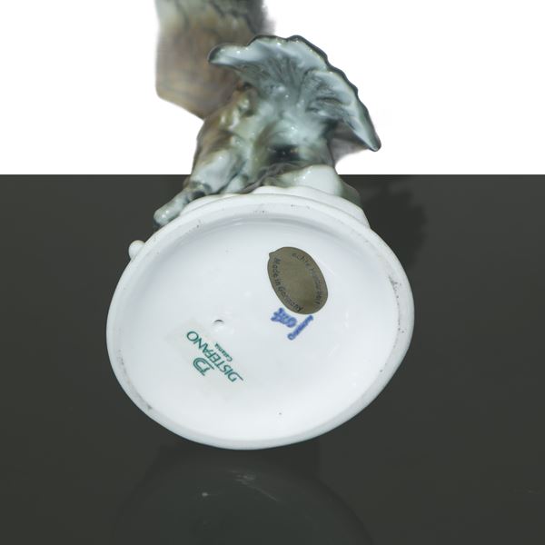 Aquila che afferra un coniglio, scultura in porcellana