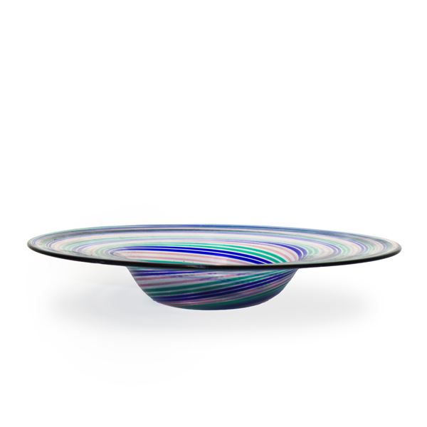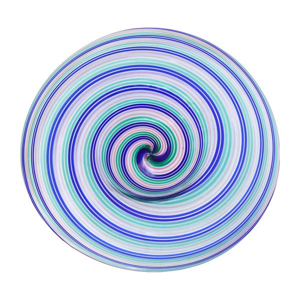 Centrotavola in vetro decori blu e verdi, XX secolo