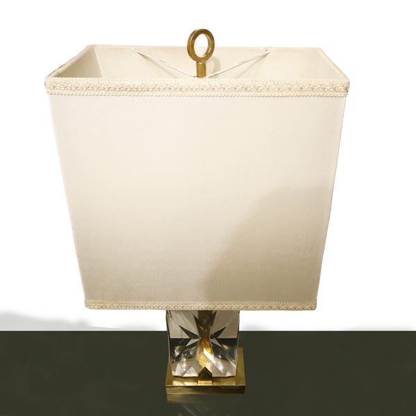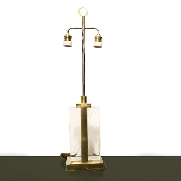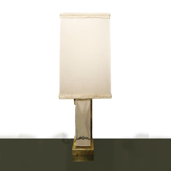Lampada da tavolo in ottone e vetro acrilico, Anni 70