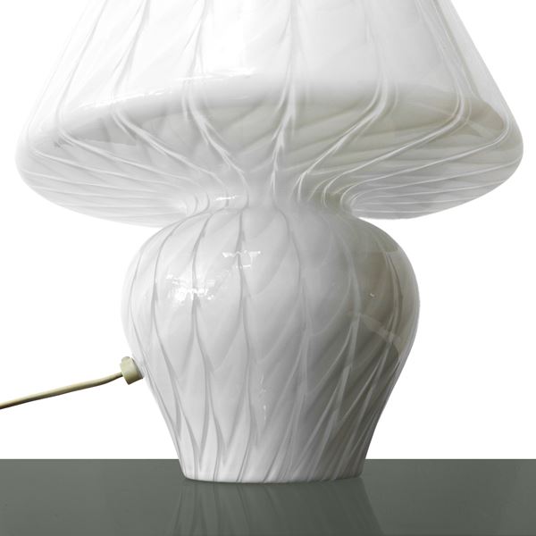 Lume da tavolo in vetro di Murano bianco lattimo a righe