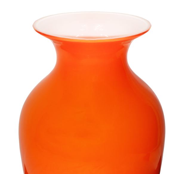Vaso in vetro di Murano arancione modello Pirus opalino