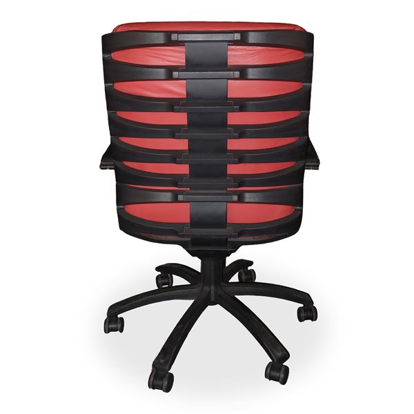 Con meccanismo per inclinare seduta e schienale indietro e per variare la curvatura della parte alta dello schienale e della porzione sotto le ginocchia, tramite apposite leve di sgancio