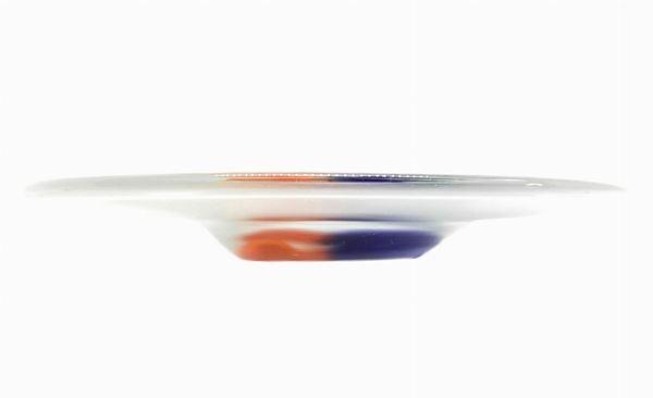 Piccolo centrotavola in vetro di Murano con striature nei toni del blu e centro marrone, Ioan Tamaia
